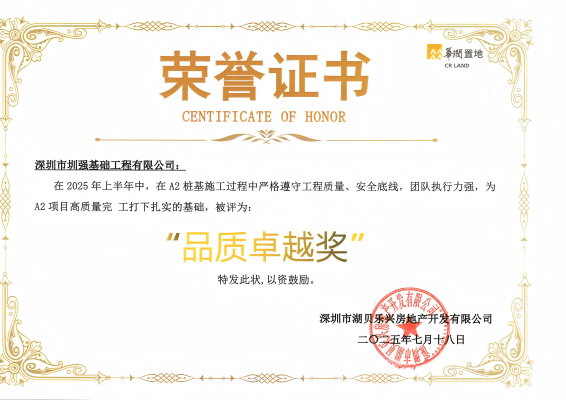 羅湖湖貝A2樁基礎(chǔ)工程榮獲“品質(zhì)卓越獎”、“進(jìn)度先進(jìn)個人”及“資料綜合先進(jìn)個人”